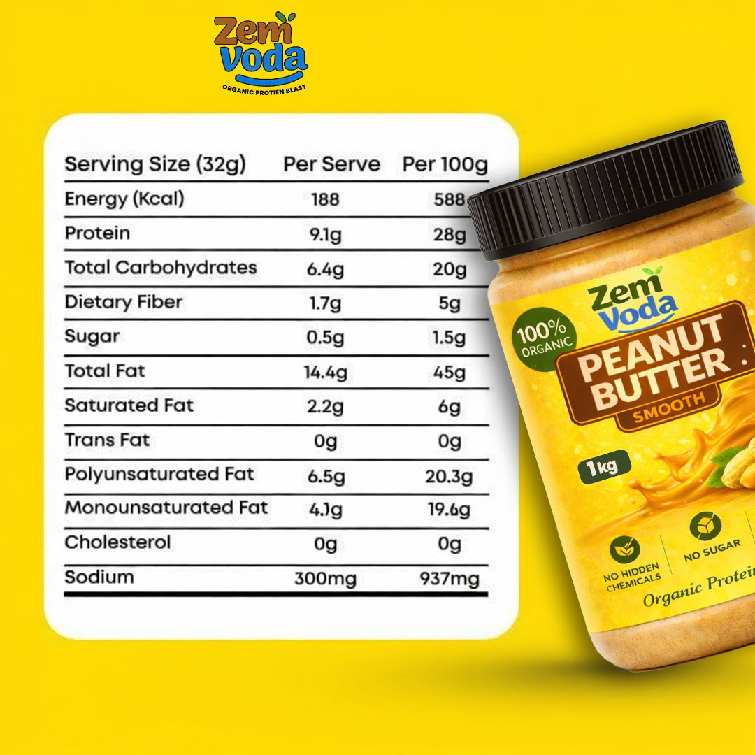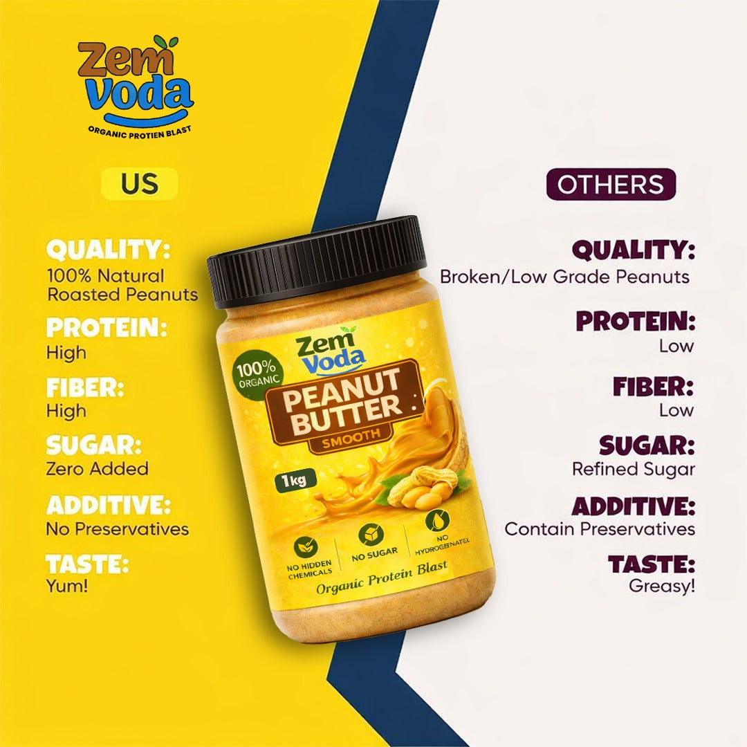 ZemVoda Organic Smooth Peanut Butter - 1kg of Pure Healthy Energy