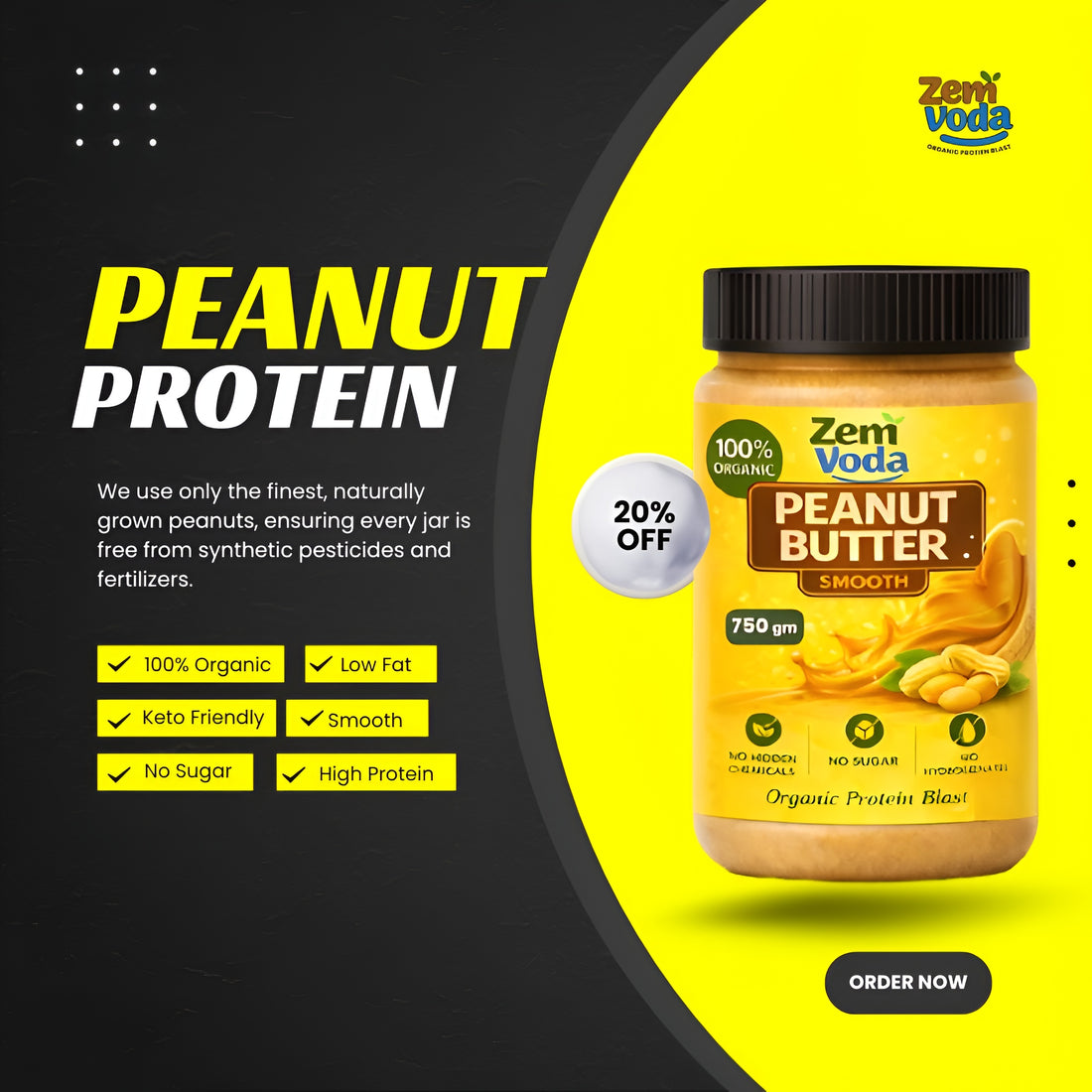 At ZemVoda, we believe that true strength comes from pure, natural food. Our organic peanut butter is made from carefully selected peanuts, delivering high protein and clean energy without any artificial additives. Perfect for fitness enthusiasts, keto lovers, or anyone seeking healthier snacking, ZemVoda brings nature’s goodness straight to your table.