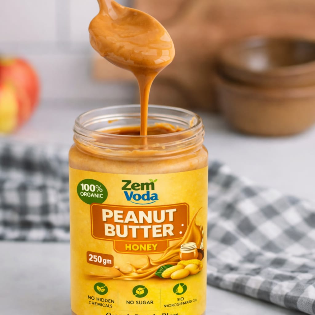 Zem Voda 100% Organic Peanut Butter with Honey – No Sugar, No Chemicals (250g)
